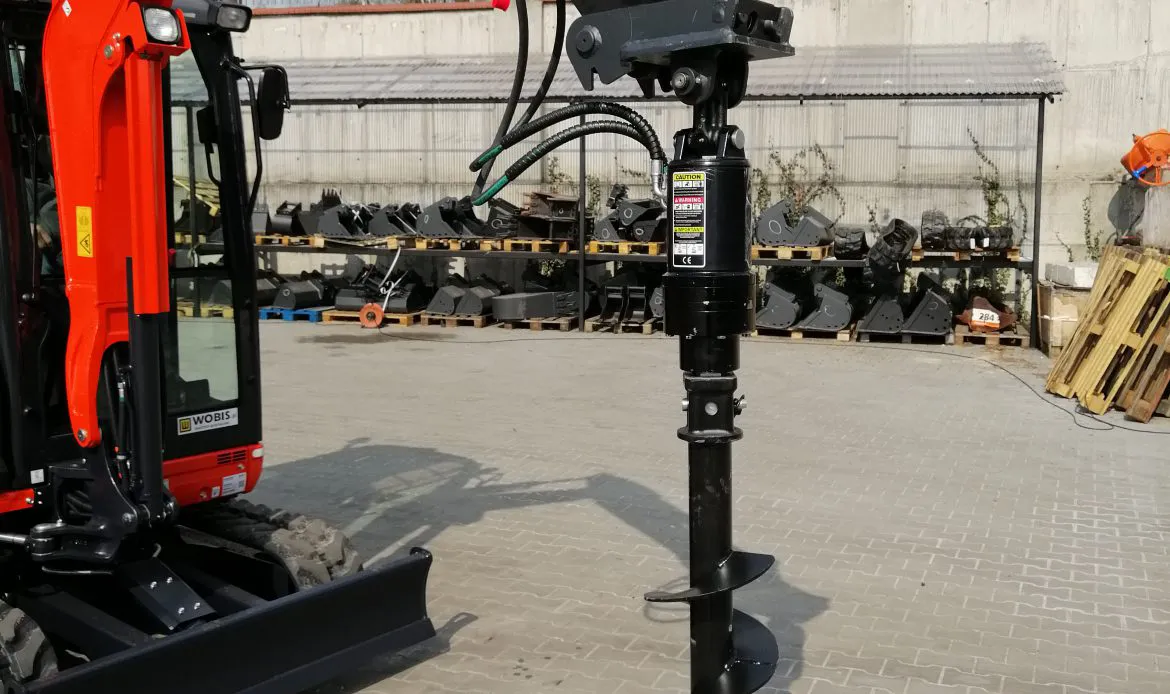 Mocowanie jest niezbędne do prawidłowej instalacji wiertnicy na koparce. Mocowanie dwu sworzniowe najczęściej stosowane jest w minikoparkach wyposażonych w szybkozłącze.